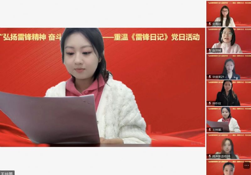 • 按照《沈阳音乐学院“弘扬雷锋精神 奋斗成就梦想”2025年春季“开学第一课”活动工作方案》部署,3月5日,正值第62个学雷锋纪念日,民族声乐系党总支和学生党支部举办了一场以“弘扬雷锋精神 奋斗成就梦想”重温《雷锋日记》为主题的党日活动,旨在深入学习贯彻习近平总书记关于弘扬雷锋精神的重要论述,引导广大党员青年积极践行雷锋精神,厚植为民情怀。