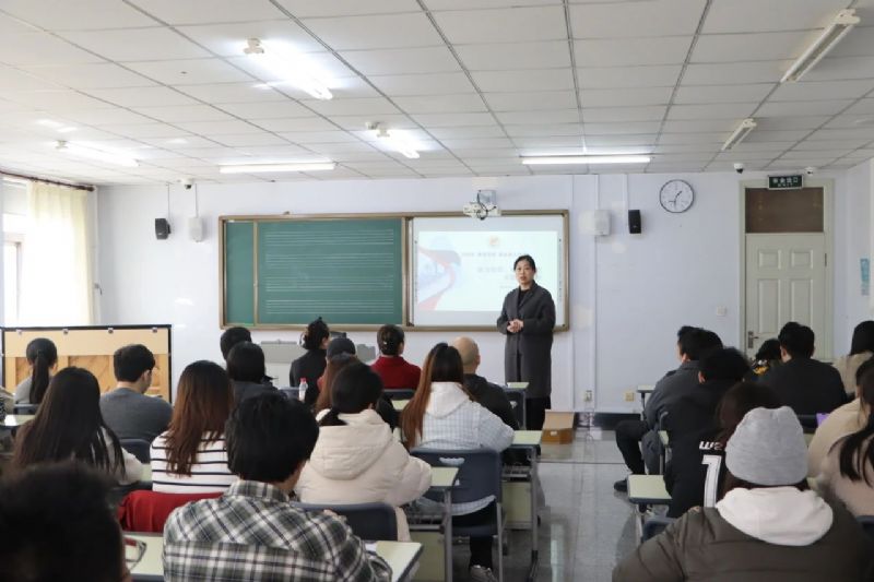 3月12日,由学院招生就业处(创新创业中心)和民族声乐系联合开展的就业育人活动“筑梦未来,智防风险”专题就业指导讲座在三好校区第二教学楼509室举办。学院招生就业处(创新创业中心)处长赵美、副处长褚祎楠,民族声乐系党总支书记郎丽红,就业创业科科长都巍、教师吴达金及民族声乐系辅导员王国峰、易美含和民族声乐系学生共计60余人参加了讲座。讲座由易美含主持。首先,郎丽红对赵美处长深入教学单位进行指导和交流表示欢迎,对招生就业处一直以来为学生们提供就业创业上的支持、指导和帮助表示感谢。她表示,同学们要珍惜这一次学习的机会,不断提升个人的就业能力和就业竞争力,充分发挥自身专业优势,树立求职信心,明确求职目标,辨析真伪,做好自身规划,争取早日实现个人理想。
