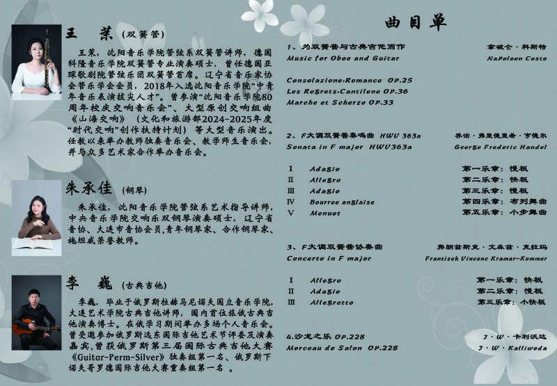 音乐会名称:娓娓道来的旋律——王茉双簧管独奏音乐会