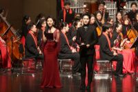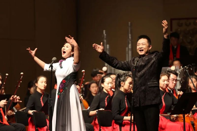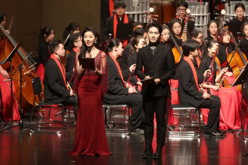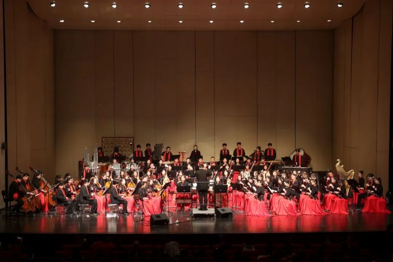 在著名青年指挥家、我院民族器乐系副教授孙鹏的指挥下,我院北方民族乐团和师生以“乐”为媒,传递新春的喜悦与祝福,展现中华文化的博大精深。民族管弦乐《盛》展现了庆典仪式的庄重、欢庆与典雅,寓意新一年的兴旺与美好;《思念》宛如抒情浪漫的倾诉,深情地表达了相思与怀念之情;古筝协奏曲《定风波》、唢呐与乐队《百鸟朝凤》以及民族管弦乐《新金蛇狂舞》《春华秋实》等作品,在保留民族音乐传统韵味的同时融入当代审美,赋予了乐曲更丰富的时代表达,更加彰显了民族音乐的独特魅力。