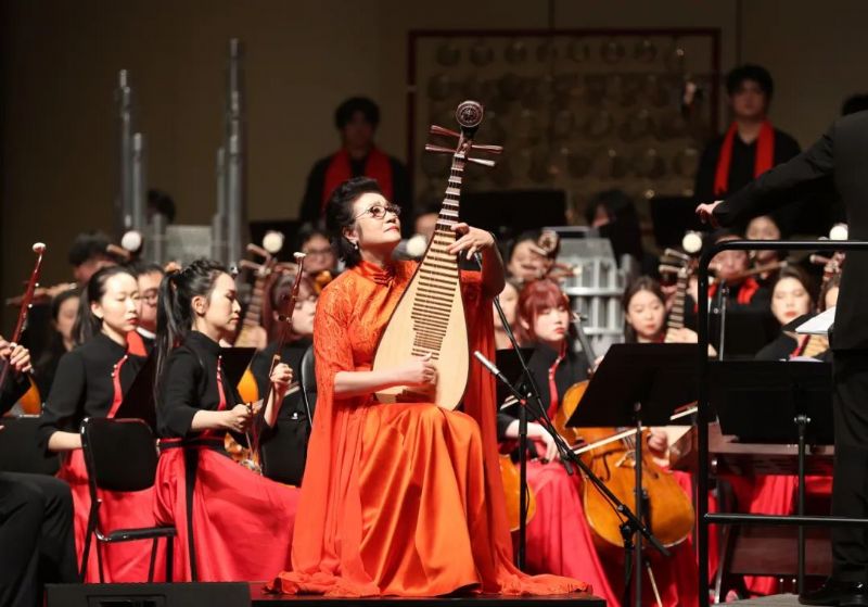 音乐会特邀中国民族管弦乐学会会长、中国音乐家协会琵琶学会会长、我国民族器乐领域知名专家吴玉霞演出琵琶协奏曲《云想花想》。演奏家通过娴熟的演奏和极具艺术感染力的表演,将作品优美的旋律、灵动雀跃、跌宕起伏的节奏完美呈现,精彩唯美的演奏赢得现场观众的热烈掌声。