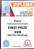 在11月1日至10日举办的哈恰图良国际青少年音乐比赛中,张瀚朗(指导教师李晓军) 在历经澳门预选赛、北京复赛、半决赛的多轮激烈角逐后,最终脱颖而出,进入决赛。在决赛中,他与国际著名指挥家谢尔盖·辛巴特扬执棒的亚美尼亚国家交响乐团携手,精彩演绎了莫扎特钢琴协奏曲K.415(第一乐章)和普罗科菲耶夫第三钢琴协奏曲Op.26(第一乐章),精湛的演奏技艺和音乐表现力赢得了评委和观众的一致好评,荣获最高奖项及奖金。
