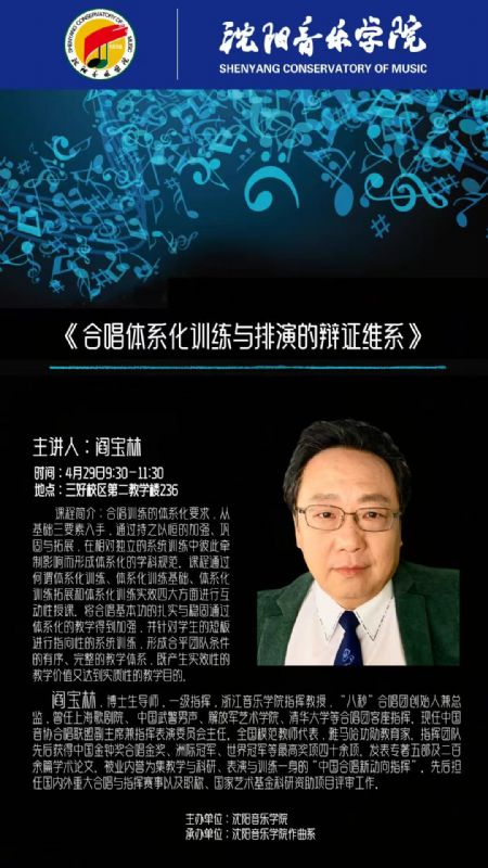 讲座预告|阎宝林——《 合唱体系化训练与排演的辩证维系》