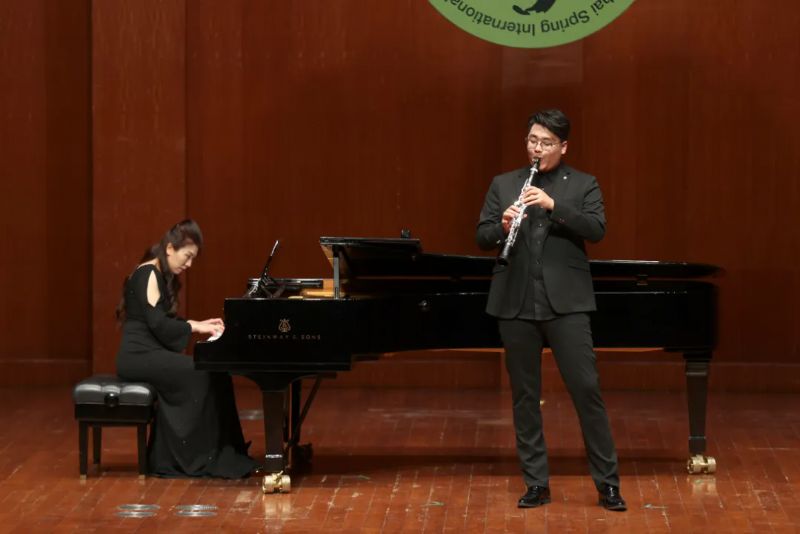 管弦系2022级研究生崔世龙小提琴独奏《引子与回旋随想曲》,绚丽的演奏技巧与钢琴伴奏相得益彰,尽显法兰西浪漫情怀。2023级学生杜明屿单簧管独奏《小协奏曲》展现出木管乐器的灵动魅力。
