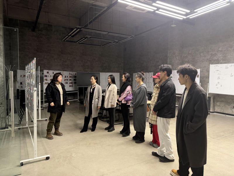 马松洁对王莹一行表示热烈欢迎,并引导师生参观了三番影业的剧组内部设施,详细介绍了三番影业的摄影棚、放映厅、剧本创作室、特效影棚等核心功能场地。她表示,希望在未来合作项目中得到我院积极响应和大力支持,特别是大量相关专业人才的支持。