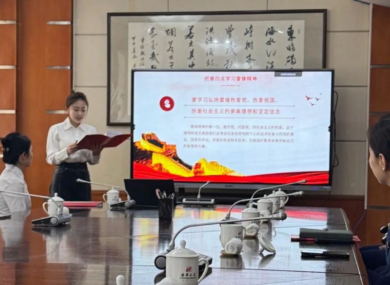 活动伊始,“红色文艺轻骑兵”以“宣讲+音乐”的创新形式,生动诠释了雷锋精神的时代内涵。2023级魏存以《走进雷锋与雷锋精神》为主题,深入解读了雷锋的生平事迹,带领大家走近真实的雷锋,让听众深刻理解雷锋精神的内涵。2022级党员学生朱悦宁以《品味雷锋日记,践行雷锋精神》为题,通过对雷锋日记的细腻解读,引导大家从雷锋的日常记录中汲取力量,将雷锋精神融入到日常生活实践中;2022级党员学生张语格以《继承雷锋传统,弘扬雷锋精神》为题,着重强调了传承雷锋精神的重要性与时代意义,呼吁大家在新时代继续发扬雷锋传统 ;2023级李明轩在以《弘扬雷锋精神,共筑温暖星河》为题的宣讲中,紧密结合辽宁大厦工作实际,阐述了如何在服务岗位上践行雷锋精神,为打造更优质的服务贡献力量;2023级吕思萱以《青年担当,践行雷锋精神》为题,展现了新时代青年在雷锋精神指引下应有的担当与作为;2022级党员学生王语涵则以《践行雷锋精神,服务声入人心》为题,生动诠释了将雷锋精神融入服务工作,用真诚服务打动人心的理念。在讲演会尾声,讲演团成员们激昂地合唱《学习雷锋好榜样》,以歌声传递雷锋精神。曲终,会议厅掌声雷动,辽宁大厦前台接待部高丹经理感慨道:“沈音学子们以艺术的语言赋予了雷锋精神新的生命力,这种校企合作的新模式为红色文化的传播开辟了新的途径。”