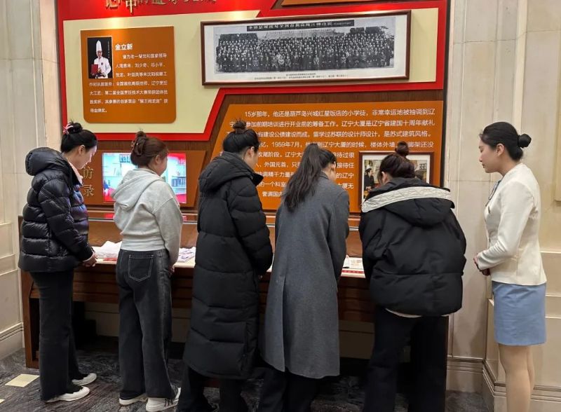 活动结束后,“红色文艺轻骑兵”在工作人员的带领下参观了辽宁大厦历史文化展厅。通过珍贵的影像资料和实物展陈,带领我们深入了解了大厦自成立以来的发展历程,尤其是其在服务地方经济、承担重大活动接待任务中展现的“敬业奉献、追求卓越”精神。讲解员表示:“辽宁大厦的发展史,本身就是一部践行雷锋精神的奋斗史。无论是服务细节的打磨,还是社会责任的担当,都体现了‘干一行爱一行’的钉子精神。”