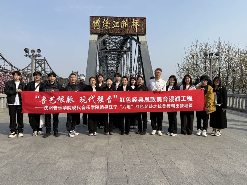 • 为深入学习贯彻习近平新时代中国特色社会主义思想和党的二十大及党的二十届二中、三中全会精神,深刻领会以伟大建党精神为源头的中国共产党人精神谱系,依托辽宁“六地”红色文化资源、爱国主义教育基地等教育资源,沈阳音乐学院现代音乐学院党总支于4月26日组织师生代表赴丹东开展“鲁艺根脉 现代强音”红色经典思政美育浸润工程系列活动,通过参观学习、红色经典歌曲路演等形式,追寻抗美援朝出征红色足迹,以艺术实践赋能思政教育,以美育浸润筑牢信仰根基。现代音乐学院党总支书记郑晓丹、副书记郎彩飞、副院长唐晓博及师生代表参加活动。