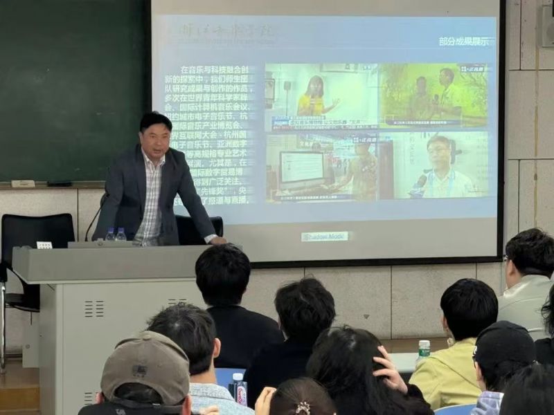4月27日至28日,浙江音乐学院数字音乐现代产业学院院长、数字音乐智能处理技术文旅部重点实验室主任谢秉元教授应邀来校举办题为《多模态交互音乐——技术融合与艺术表达的协同创新》的专题讲座和大师班交流课程。作曲系相关专业师生到场聆听讲座及大师班授课。讲座由作曲系主任韩焱教授主持。