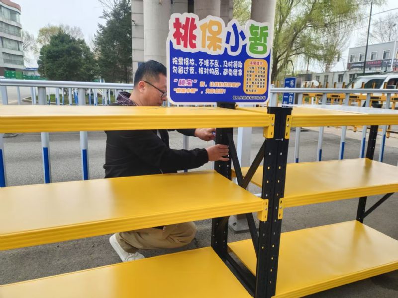 为解决宝爸宝妈们传递"最后一米"难题,保卫处桃仙校区“桃保”叔叔们贴心打造“桃保小暂”临时储物空间!