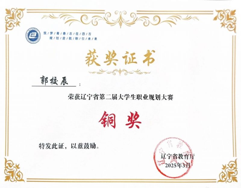 在辽宁省教育厅举办的“辽宁省第二届大学生职业规划大赛”中,我系2021级二胡演奏专业学生郭校辰荣获就业赛道高教组铜奖(指导教师:王晓飞、张明)。