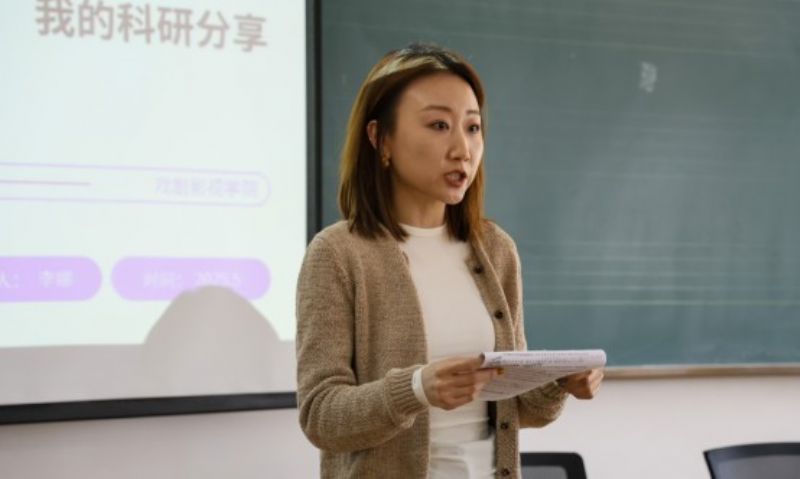 戏剧影视文学系和影视摄影与制作系党支部书记李娜以《我的科研分享》为题,解构了从研究选题到研究成果的发展路径,并建议从“新技术追踪、美学新范式、全流程创新”三个维度开展研究。针对申报书撰写难题,她提出“问题导向-创新路径-预期成效”的论证逻辑链构建研究技巧。