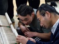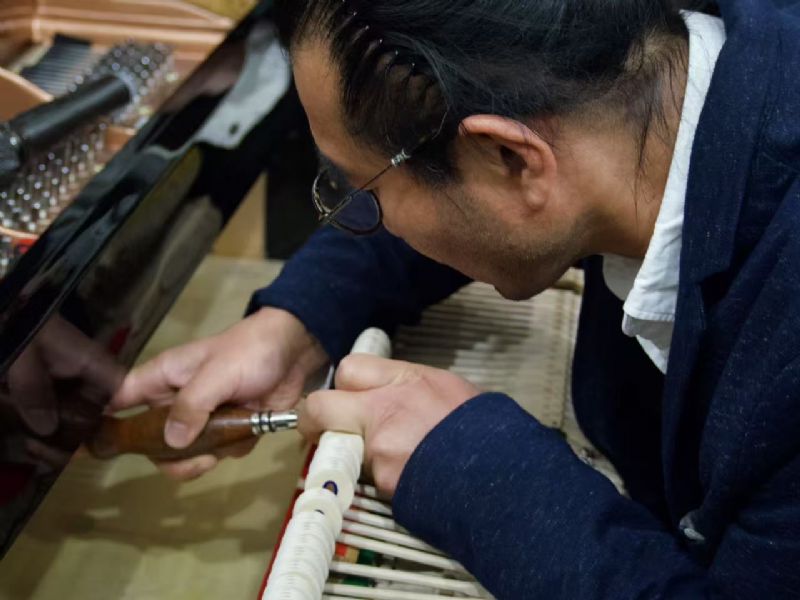 理论讲解结束后,胡海鹏进行了现场实操展示。他以钢琴的中音区为示范区域,运用针刺和弦槌打磨等专业手法,对钢琴音色进行处理。每一个动作、每一个细节,他都耐心讲解,将自己多年积累的经验倾囊相授。在他的操作下,钢琴的音色逐渐发生变化,原本单一的音色变得更加丰富、饱满,现场师生无不惊叹于整音技术的神奇魅力。