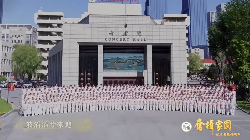 来自声乐歌剧系、民族声乐系、戏剧影视学院的450名学生共同参与《九歌·河伯》朗诵,以声浪的起伏模拟河水奔涌,与辽宁籍奥运冠军、辽篮球星以及东北大学、沈阳大学的学子们共同构建“诗诵古今”的沉浸式场景。