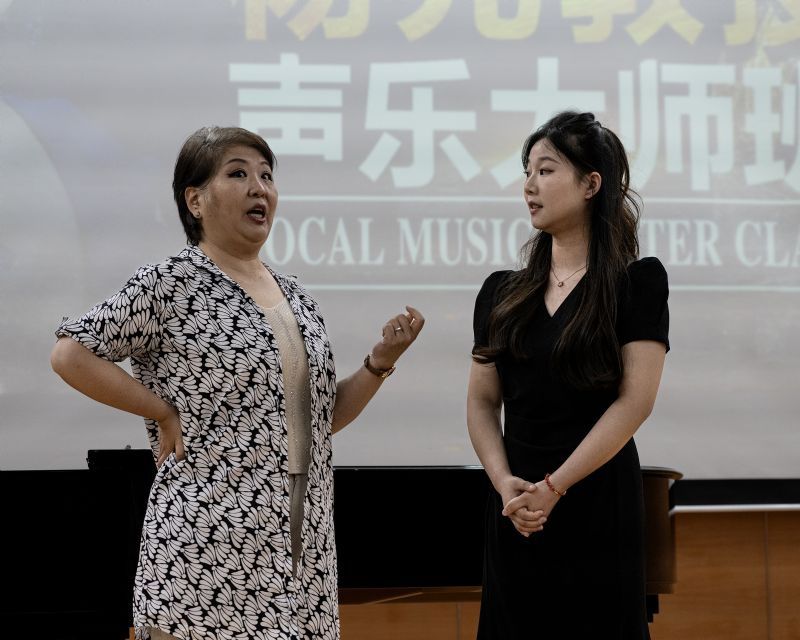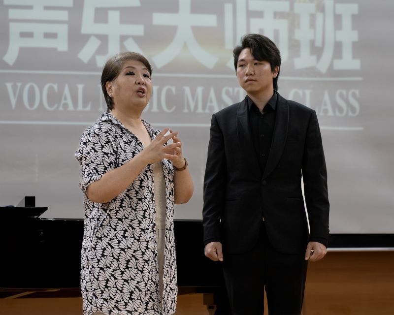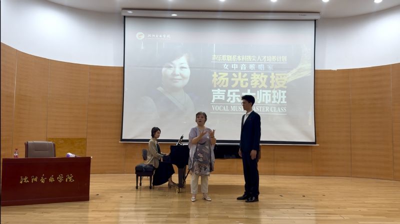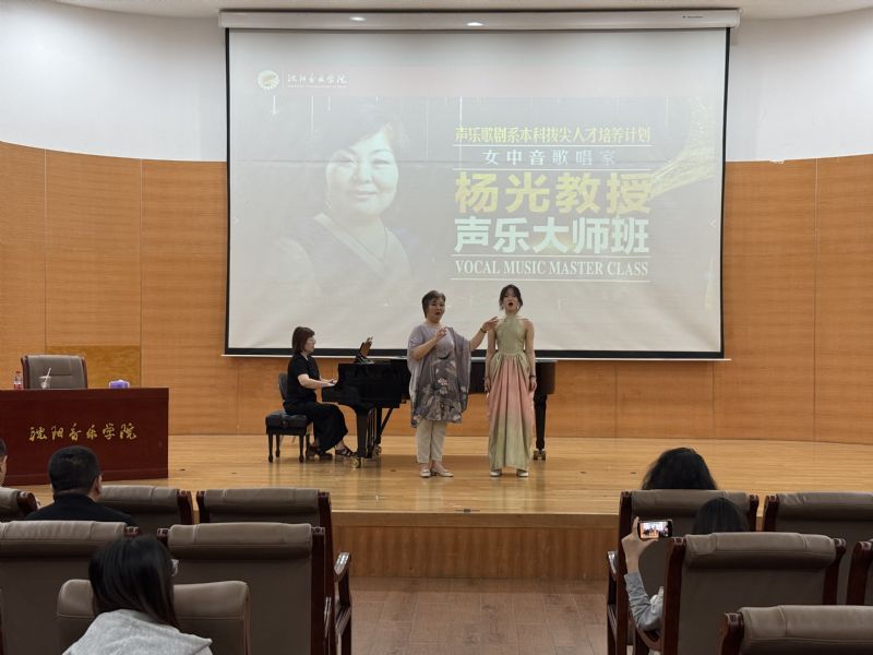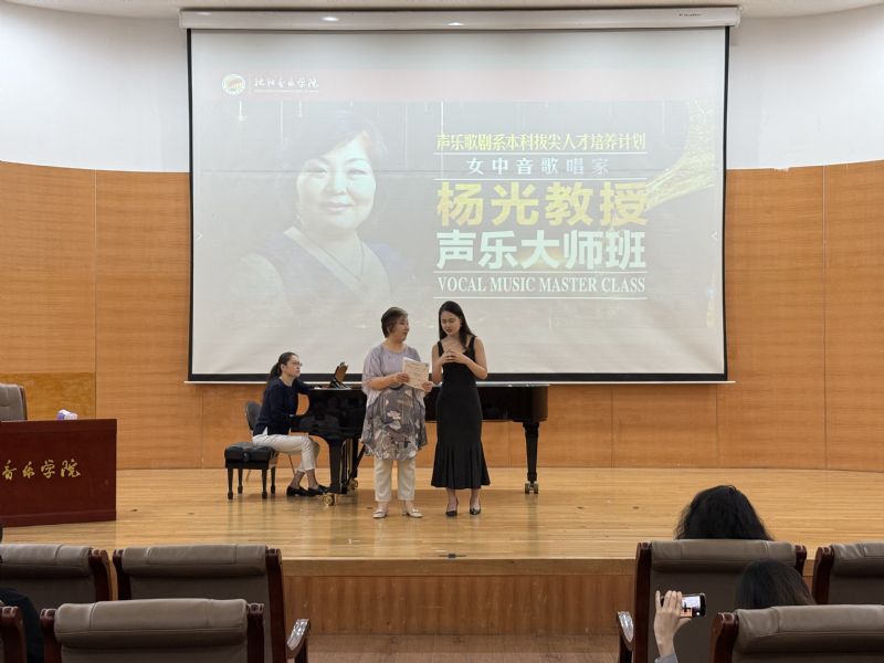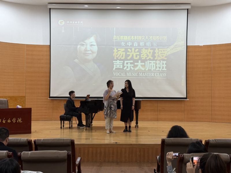 •        为深化本科拔尖人才培养机制、提升人才培养质量,6月5日至6日,我系特邀著名女中音歌唱家、声乐教育家杨光教授来院举办声乐大师班。本次活动由声乐歌剧系副主任贾鼐主持,大师班聚焦声乐演唱的技术要点、艺术表现及职业发展展开,杨光教授结合自身丰富的舞台与教学经验,通过理论讲解、现场示范与学生指导,为师生呈现了一场兼具专业性与实践性的学术交流。