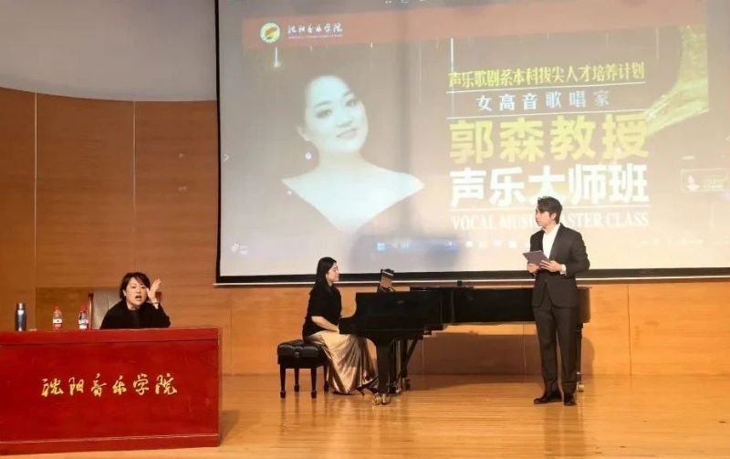 大师课尾声,贾鼐代表我系向郭森表示感谢。郭森教授不仅以国际化的艺术视野和充满温度的教育情怀精准解析作品,更以“声乐教育家”的使命感传递音乐与人生的真谛,她的指导既有对音乐细节的严苛把控,又充满对艺术追求的深刻哲思,同时为声乐拔尖人才培养树立了学习标杆。本次大师班是我系践行“德艺双馨”育人理念的生动实践,并展现了我系优秀学生扎实的声乐功底与求知热情。未来,我系将持续引进国内外顶尖专家,通过“大师班+舞台实践+国内国际赛事”的立体化培养体系,助力拔尖人才实现从技术训练到艺术表达的跨越,也为新时代高水平声乐演唱人才的成长提供沈音方案。