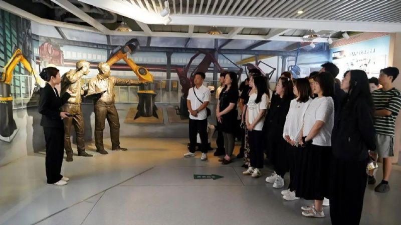 踏入沈阳市劳动模范纪念馆,序厅里“劳动创造幸福”的主题雕塑与满墙的劳模笑脸相互映衬,拉开师生党员探寻劳动精神的序幕。纪念馆依据历史发展脉络划分成七大主题展区,分别是“顶天立地做主人(1948—1952)”“长子担当士气高(1953—1957)”“自力更生集结号(1958—1965)”“默默奉献写新篇(1966—1978)”“改革窗口万象新(1979—1991)”“凤凰浴火展英姿(1992—2002)”“振兴圆梦创伟业(2003年至今)”。馆内,泛黄的生产图纸、陈旧的工具器械、珍贵的奖章证书以及高度还原的场景,每一件展品都承载着历史的记忆。各展区以时间为主线,借助“沈阳制造”的技术资料、产业变革的实物见证以及“劳模精神数字长廊”的全息影像,全方位展示了不同时期劳动者以厂为家的奋斗热情、支援全国的无私奉献和改革创新的时代精神。参观期间,大家或久久伫立,仔细端详全国劳模尉凤英的车工笔记;或在“沈阳制造”展区轻轻触摸新中国第一枚金属国徽的复刻模具,在历史与现实的交融中,深切体会劳动精神作为时代精神核心的不朽价值。