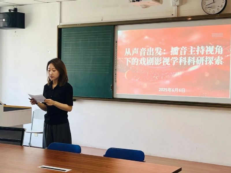广播电视编导系教师姜贵欣以“播音主持视角下戏剧影视学科科研探索”为题,围绕播音主持与戏剧影视学科交叉领域,提出以声音为核心的科研思路。她建议,从行业热点和自身兴趣切入,围绕影视声音叙事、跨平台声音传播、主旋律电影声音表达、配音的文化改编、纪录片声音真实性等五个方向展开研究,运用具体案例和扎实理论支撑课题,并注重数据与学术规范的结合。这种务实的研究路径,既能帮助教师积累科研成果,也能为声音艺术人才培养提供新视角,推动学科知识在行业实践中落地应用。