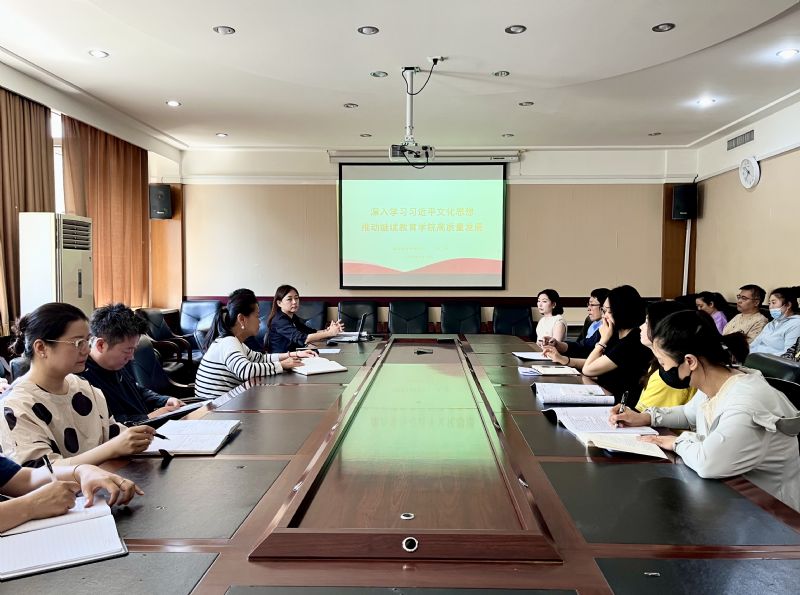 课上,梁莹结合多年教学工作与舞台实践,对习近平文化思想的核心要义、丰富内涵进行了深入的解读。梁莹紧密围绕习近平文化思想,对教育教学评估中的“以评促建 以评促改 以评促管 以评促学”十六字方针和全面落实立德树人根本任务的评估指标体系,向全体教职工进行深入解读。