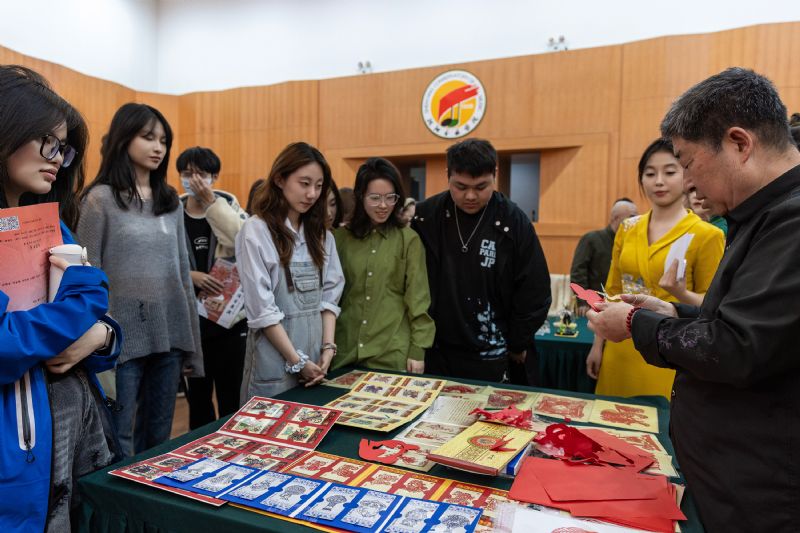 台上展演精彩纷呈,台下互动热闹非凡。分别由张梓梵、李欣格、李洁涵、田晓禾、孙华阳、王叶涵、周妺、杜姝娴讲解的沈阳本土非遗技艺如面人、草编、糖人、绳结、剪纸等,将传统手工艺的精湛巧妙展现得淋漓尽致,深深吸引着我院师生们的眼球,并自发踊跃地参与其中体验学习。