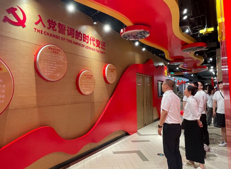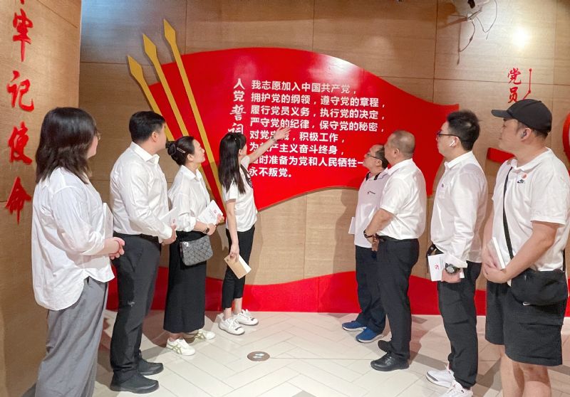 在讲解员的带领下,党员们依次前往党史长廊、党员组织生活室等六个展室进行参观。党史长廊中,大家见证了中国共产党的发展历程、党章修订历程、入党誓词的历史演变,认识到中国共产党人是《共产党宣言》精神的忠实传承者,看到了中国共产党从严治党无终点的决心和信心。党员楷模记录墙上,大家了解到焦裕禄、郭明义等优秀党员的先进事迹。
