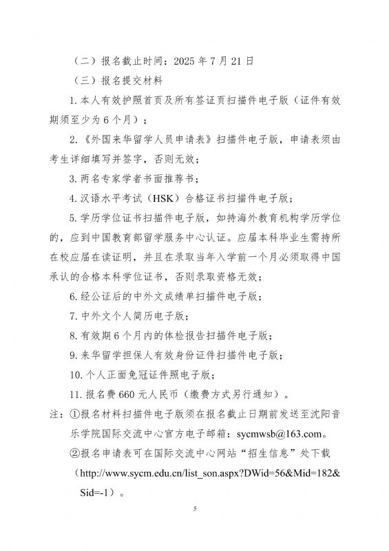 沈阳音乐学院2025年硕士研究生留学生招生简章