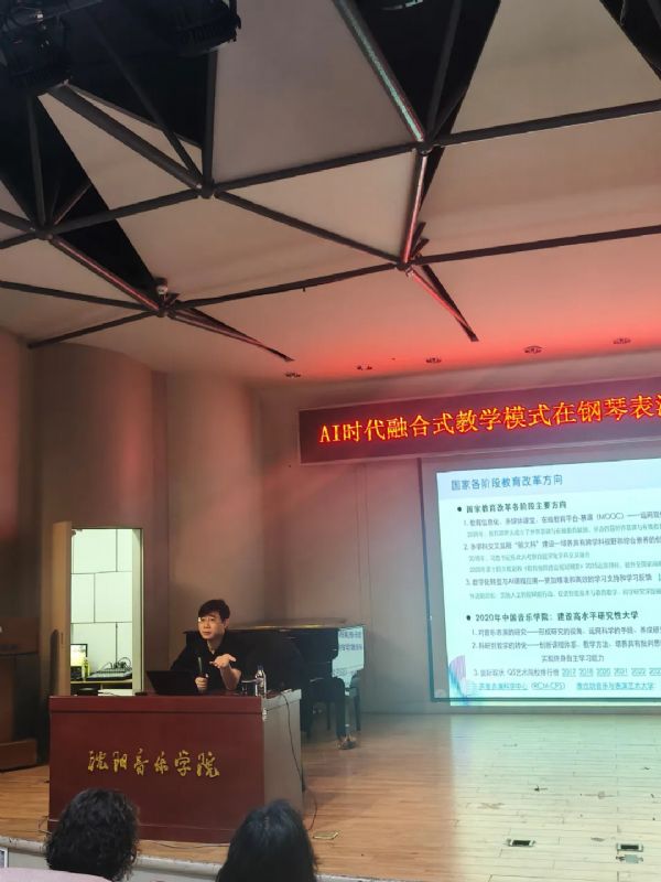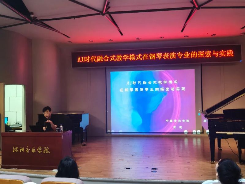 6月18日上午,中国音乐学院钢琴系副教授,硕士研究生导师,全球音乐教育联盟钢琴艺术发展中心主任王遒在第二教学楼424多功能厅举办《AI时代融合式教学模式在钢琴表演专业的探索与实践》讲座。活动由沈阳音乐学院钢琴系主任冯子祥教授主持。