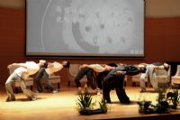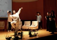 演员袁嘉莹现场示范了剧目的标志性动作“青绿腰”,舞蹈学院师生竞相学习模仿。演员刘沛然展示了如何通过肢体语言表达舞剧中的经典意象和丰沛情感。通过现场教学互动,拆解《千里江山图》如何“舞”动重生,将大家带入宋代美学的世界,让在场师生真切感受到传统文化在当代舞台艺术中的创造性转化。