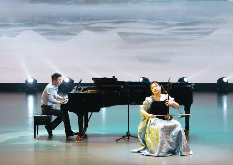 音乐会中精彩的演出是学生用汗水浇灌的成果,更是学院教育理念的生动诠释。从古筝重奏《西凉沙影》中流淌的丝竹雅韵,到女声独唱《峡江情歌》里绵延的山河情思;从二胡独奏《第一二胡狂想曲》的激情澎湃,到钢琴独奏《肖邦b小调谐谑曲》的浪漫深邃,这些精心编排的节目,不仅展现了学子们扎实的专业功底,更传递着他们对音乐艺术的敬畏与热爱。