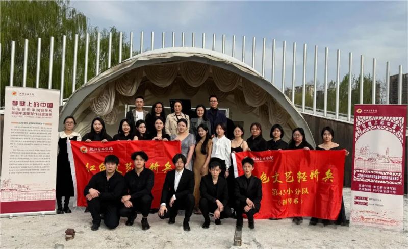 •                          春满沈城,琴韵流芳。4月23日,在浑河畔的郎朗钢琴广场,沈阳音乐学院钢琴系师生用一场激荡着红色血脉与时代精神的艺术盛宴,谱写了一首"文艺为人民服务"的动人乐章。钢琴系副科教研室主任张一茵副教授、主科教研室教师苏乐副教授、王丽莉副教授、教师张天怀与分团委书记邓一帆共同携手“红色文艺轻骑兵”第42、43小分队,以讲为笔,以琴为墨,绘就出一幅融汇百年风华的音乐画卷。