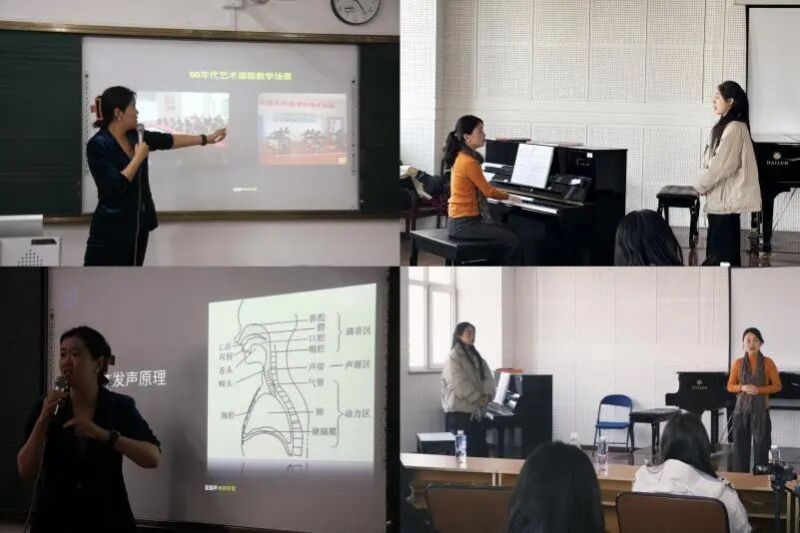 在教学质量提升月之际,声乐教育系成功举办《科技赋能音乐教育,现代信息技术与声乐教育深度结合实践模式分享》以及《音乐教育专业学生自弹自唱能力培养的关键问题与教学展示》两场公开课,主讲人分别是张昊、解伟老师。这两节公开课不仅展示了声乐教育系在教学改革方面的积极探索,也为师生们提供了一个交流学习的平台。让学生对科技赋能音乐教育以及自弹自唱能力培养有了更深入的认识和理解,师生们收获颇丰。