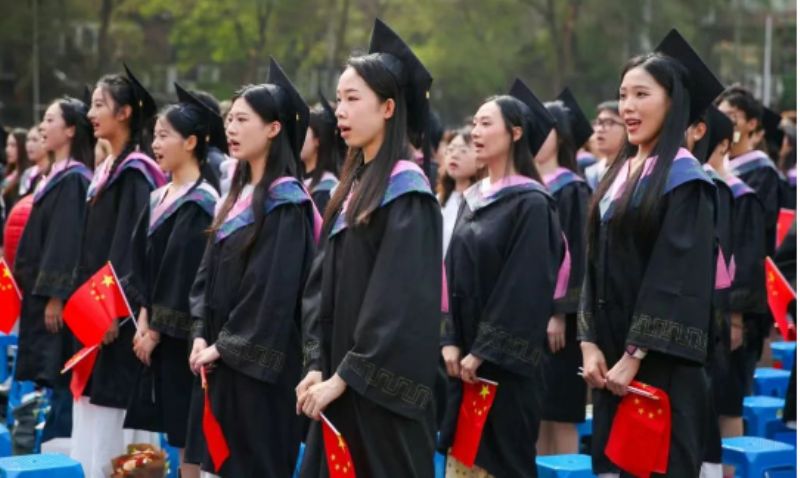 在激昂嘹亮、催人奋进的校歌《我们走在大路上》中,毕业典礼落下帷幕。主席台就坐的领导、老师起立目送全体毕业生有序退场,伴着音乐《启程》,毕业生们难掩泪水与恩师、同窗挥手告别,拥抱鼓励,带着对母校的眷恋、师长的教诲、同窗的友情,踌躇满志地奔赴山海,报效祖国。