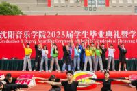 典礼开始前,“川子唢呐”——2015届校友孙名川与民族器乐系14名学生、现代音乐学院4名学生联袂演奏电影《哪吒·魔童闹海》主题曲《就是哪吒》,高亢嘹亮的唢呐声与动感十足的电音节奏激情碰撞,展现了民族乐器与现代电音的完美融合,瞬间点燃全场的激情。“少年应有鸿鹄志,敢踏风浪破苍穹”,随后舞蹈学院40名学生表演了洒脱俊美的蒙古族舞蹈,他们扬臂似鸿雁高飞,轻踏如骏马踱步,既象征着2025届毕业生“天高任鸟飞”的宽广未来,也寓意着毕业生们“骏马踏平川”的美好图景。“踏浪驭飞舟、千帆竞出征”,现代音乐学院、国际教育学院15名学生与声乐歌剧系8名学生梦幻联动合唱歌曲《当离别开出花》《未来我来》,流行韵律交织美声咏叹,时尚与古典共鸣,唱出了沈音学子逐梦前行、奔赴山海的自信从容和未来我来、勇担使命的挺膺担当。全体毕业生牢记母校嘱托,传承红色基因,赓续红色血脉,在民族复兴的征程上展现沈音学子的青春风采,施展艺术才华报效家国。