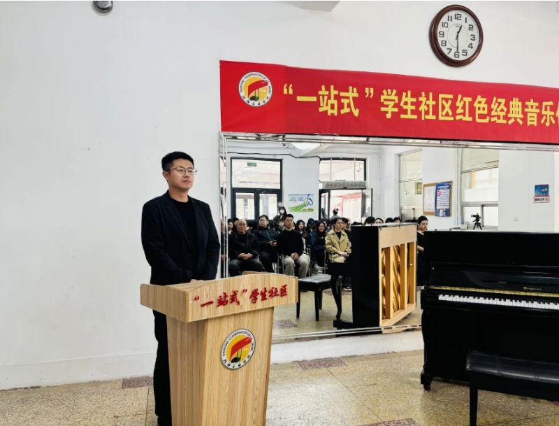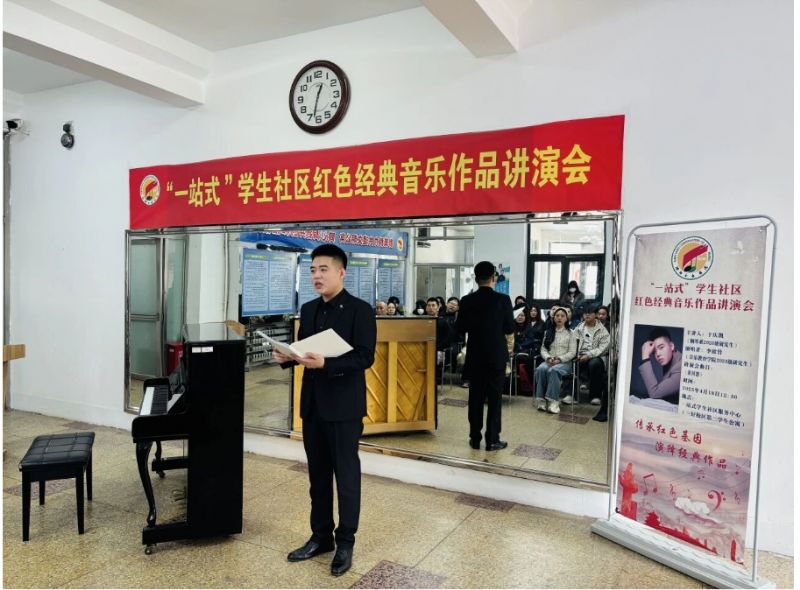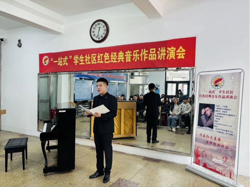 4月18日,由学院举办的第38期“一站式”学生社区红色经典音乐作品讲演会在三好校区“一站式”学生服务中心举行。钢琴系相关负责人、辅导员及50余名学生共同参与了本次活动。讲演会由钢琴系辅导员邓一帆主持。