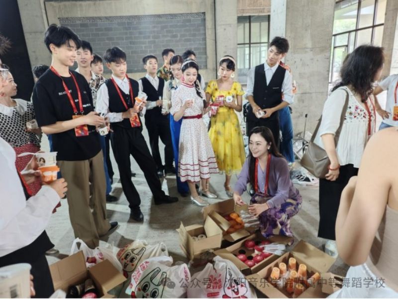 排练、彩排和演出期间,沈音舞校党总支书记伍爱京、校长王晓玲、副书记黄山、副校长王楠多次带着解暑饮品与清凉礼包走进排练场,指尖的清凉驱散了夏日的燥热,更传递出学院对“艺术服务城市”实践的重视。