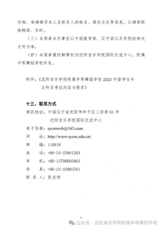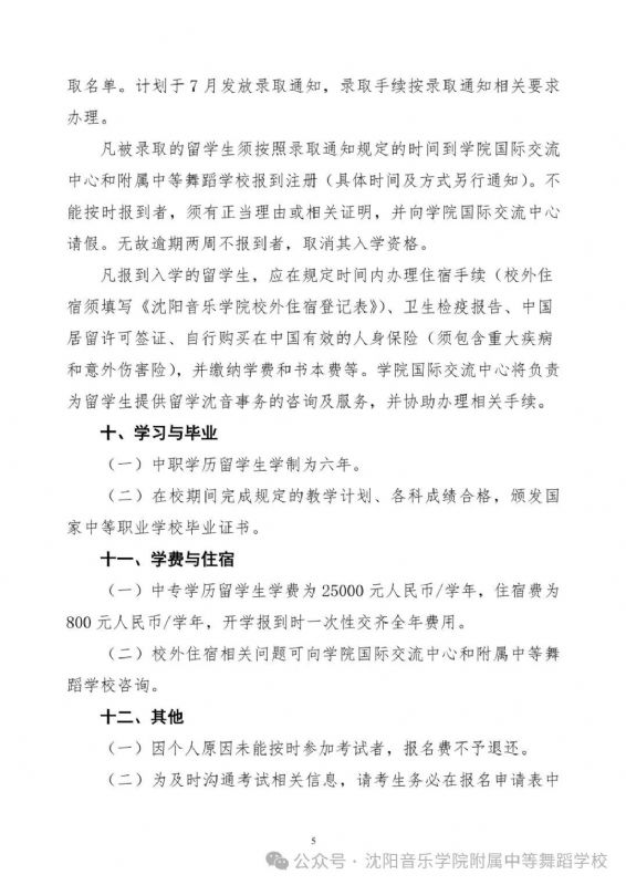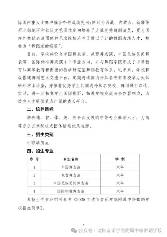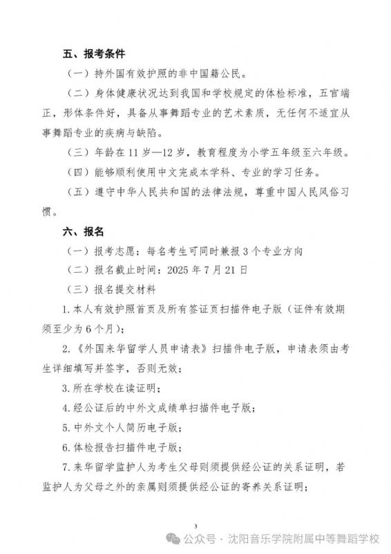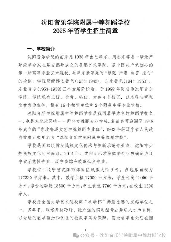 沈阳音乐学院附属中等舞蹈学校2025年留学生招生简章