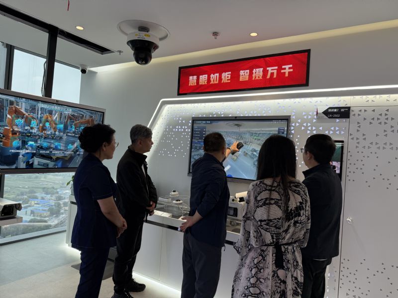 会后,双方共同参观了海康威视辽宁业务中心的展厅与演示中心。赵宏旭现场展示了公司在视频监控、红外成像、会议音频系统、VR全景摄像等方面的最新产品与应用场景。汪洋结合音乐科技创新实验室的现有资源,提出将海康设备用于声学检测、虚拟演出、多感官疗愈空间构建等方向的合作设想。