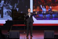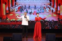 参会领导、现场观众与全体演职人员共同歌唱《我们走在大路上》