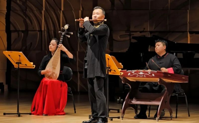 在墨尔本演奏中心,民族器乐重奏《红高粱》奏响了抗战岁月中的悲壮与激情,《嘉陵江上》《黄河颂》《追寻》等作品唤起观众跨越时代的情感共鸣。辽宁省副省长单义、澳大利亚维多利亚州上议院前议长布鲁斯·诺曼·阿特金森(Bruce Norman Atkinson)、中国驻墨尔本总领馆总领事房新文与各界人士近千人观看演出。