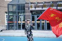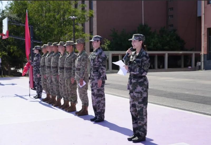 在振奋人心的授旗环节,承训部队教官庄严地将军训团的旗帜授予参训新生代表,旗帜在风中猎猎作响,象征着军训的正式开始,也承载着新生们即将面临挑战、突破自我的坚定信念。