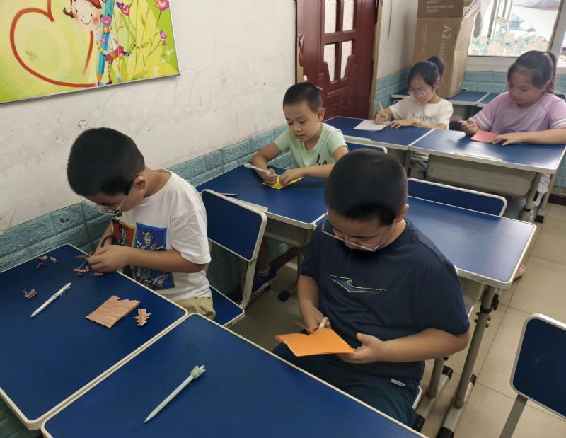 在剪纸教学环节,同学们向孩子们介绍了剪纸艺术的渊源、工艺特征和优秀作品,并现场教学,教孩子们如何运用剪刀和纸张,创作出一幅幅精美的剪纸作品。在同学们的带领下,原本平平无奇的彩纸,渐渐变成了带着锯齿纹的雪花、憨态可掬的小兔子、寓意吉祥的福字、窗花等,大家自豪地向大家展示自己的作品。孩子们纷纷表示,这次活动让他们感受到了剪纸艺术的魅力和乐趣,也让他们更加深入地了解了中国的传统文化。