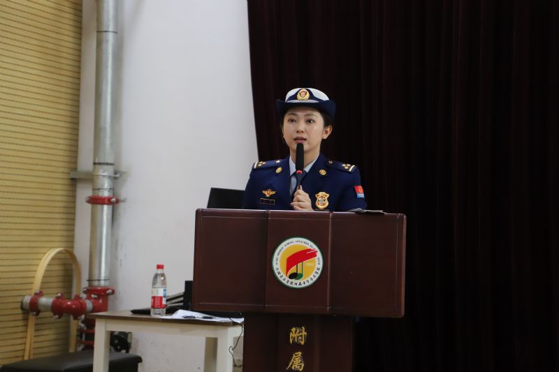 本次培训特邀沈阳市消防救援支队金牌讲师石玉参谋进校授课。石参谋结合校园真实案例,通过“理论+互动”的形式,聚焦宿舍、教室、排练厅等校园场景,系统讲解火灾预防与应急技能,为新生带来一堂沉浸式安全必修课。