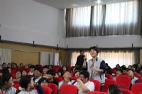 在培训中,石参谋还讲解了灭火器、防火面罩、手动报警器等消防器材的使用方法,并精心为同学们准备了小礼物,与同学们互动,现场气氛热烈。