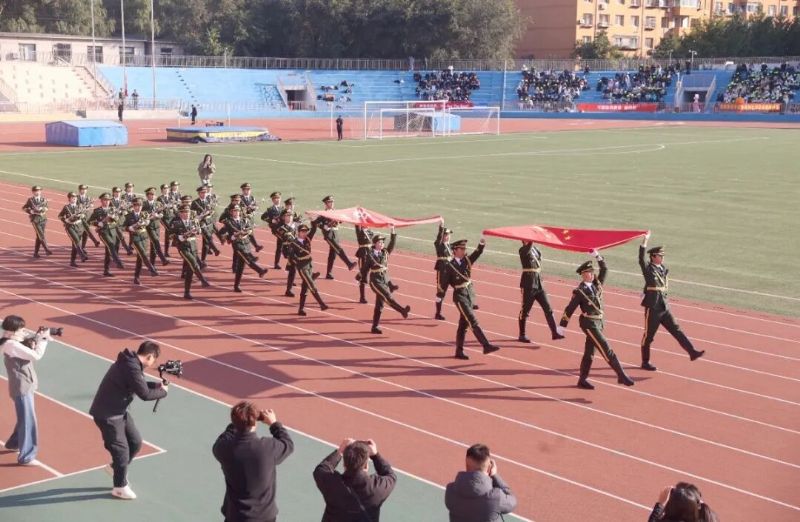 上午8时20分,大会在庄严而热烈的氛围中正式拉开帷幕。开幕式由学院副院长庞渤主持。在激昂的《我们走在大路上》校歌旋律中,国旗方队、校旗方队、裁判员方队、教职工方队以及由各院系师生组成的17支方队踏着铿锵的节拍依次入场。他们步伐矫健、口号嘹亮,以饱满的精神状态依次经过主席台,展现出昂扬向上的风采。各个方队充分发挥专业特色,巧妙融入音乐、舞蹈等艺术元素,呈现出一场场创意十足、精彩纷呈的入场表演。体育场仿佛化身为流动的艺术舞台,乐声、鼓声和欢呼声交织为澎湃的交响乐章。升旗仪式庄严肃穆,伴随着雄壮的《义勇军进行曲》,五星红旗在全场师生的注目下冉冉升起,在朝阳中迎风飘扬。