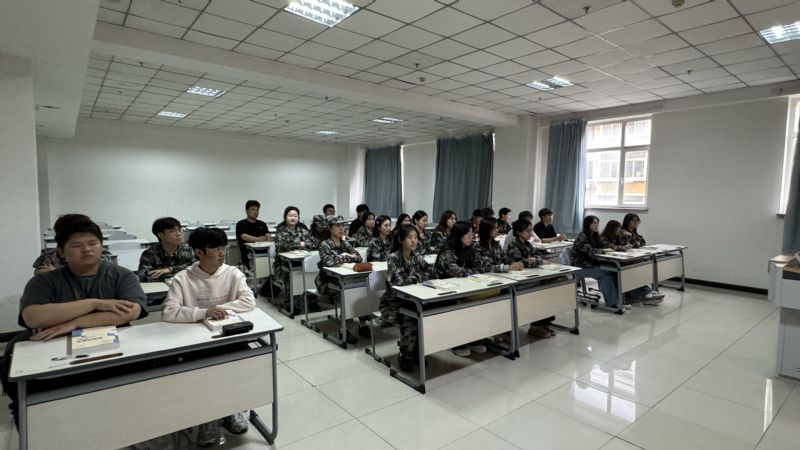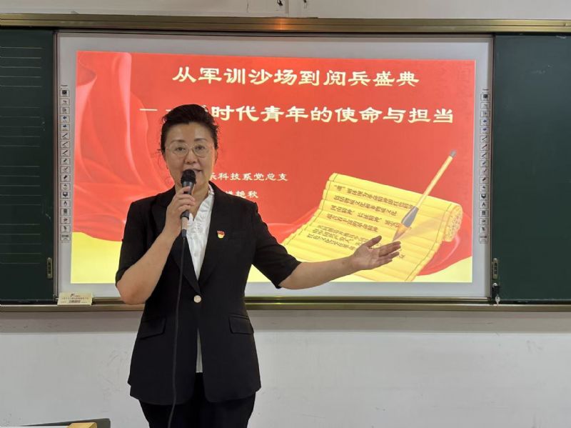 随后,姚艳秋从回望历史:从阅兵盛典看民族复兴的“来时路”、立足当下:从军训磨砺悟青年成长的“必修课”、展望未来:以青春之我担时代之“新使命”三个方面,分别阐述了九三阅兵的重要意义、军训对锤炼意志、培养责任感、学会协作的重要作用,积极鼓励学生将爱国情、强国志融入艺术创作、社会实践,以实际行动致敬历史、回馈社会。