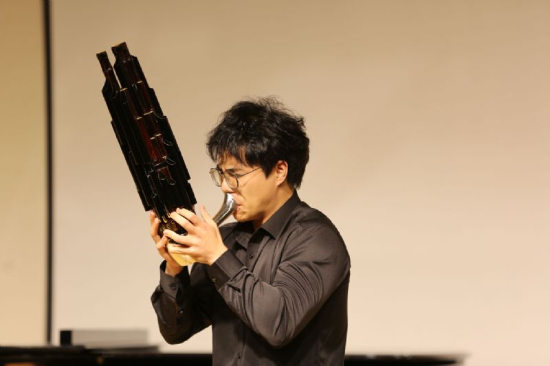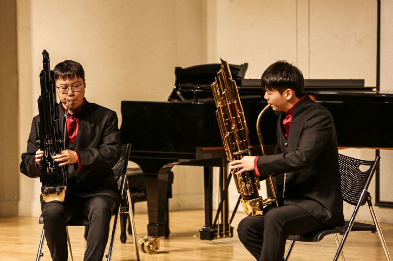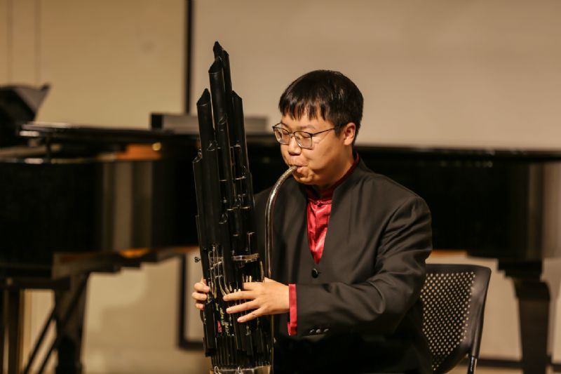 笙作为中国古老的簧管乐器,在不同地域文化浸润下形成了各具特色的艺术风格。武汉音乐学院植根荆楚大地,其笙乐兼具南方灵秀婉转与江汉平原的开阔气息;沈阳音乐学院依托关东文化,笙音更显高亢苍劲的气质。音乐会上,两校研究生依次登台,曲目既涵盖彰显地域特色的经典作品,也包含考验协作能力的重奏、合奏节目,南派细腻精巧与北派粗犷豪放的艺术特质交相辉映,生动诠释了“南北和鸣”的活动主题。