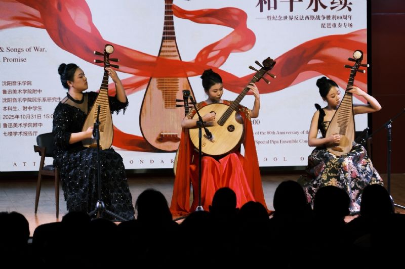 践行艺术实践,传承鲁艺精神。10月31日,沈阳音乐学院民族器乐系党总支依托“红色文艺轻骑兵”,带领师生走进鲁迅美术学院附中,共同举办“鲁艺精神润心,音美共振赋能”主题琵琶重奏音乐会。两校均发源于延安鲁迅艺术学院,此次交流是“鲁艺”血脉在新时期的再次融合与共振。