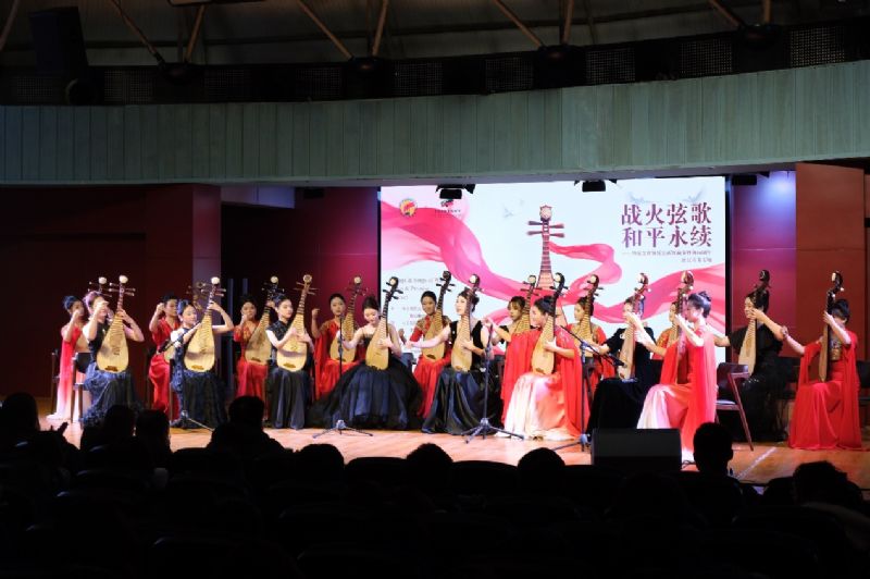 音乐会在全体参演同学合奏的《我和我的祖国》中达到高潮。这首经典作品由沈阳音乐学院校友张藜作词、老院长秦咏诚作曲,通过对多把琵琶的创新编配,奏响磅礴旋律,不仅唤起深沉爱国情怀,更成为连接两校“鲁艺传人”的动人纽带,彰显了沈音红色基因的当代传承。