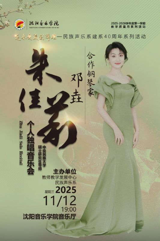 预告!延水长流创辉煌——民族声乐系建系40周年系列活动 | 中央民族大学硕士研究生导师朱佳莉个人独唱音乐会