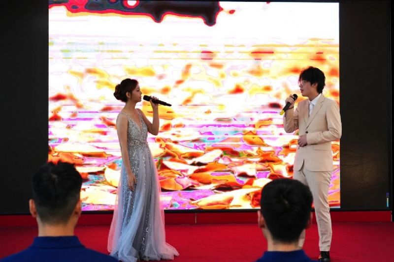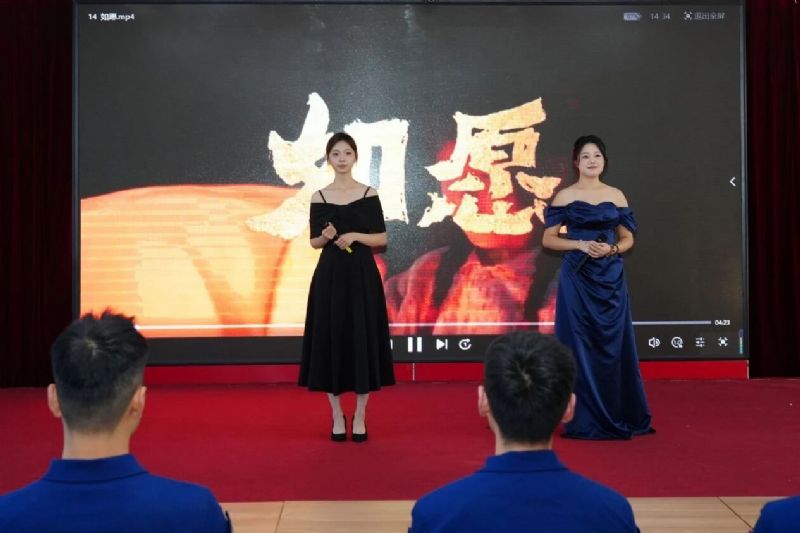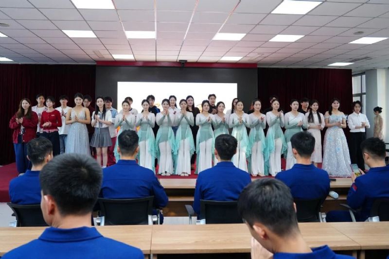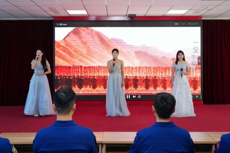 教师张瀚、杨韵秋联袂献唱《为了谁》,以磅礴深情的歌声致敬无名英雄,生动回答了“为了谁”的深刻命题,唱响了“谁最美”的时代赞歌。舞蹈《小鸟睡在我身边》惊艳登场,舞姿流畅而富有感染力,用肢体语言实现了形、情、乐三者合一。教师侯国辉带来男声歌曲串烧《疼爱妈妈+当那一天来临》,从对母爱的深情倾诉,到对军人保家卫国的赞美,将家国情怀融入音乐表达。演出在气势恢宏的《强军战歌》中落下帷幕,台上台下齐声歌唱,节奏铿锵,为演出画上了圆满的句号。